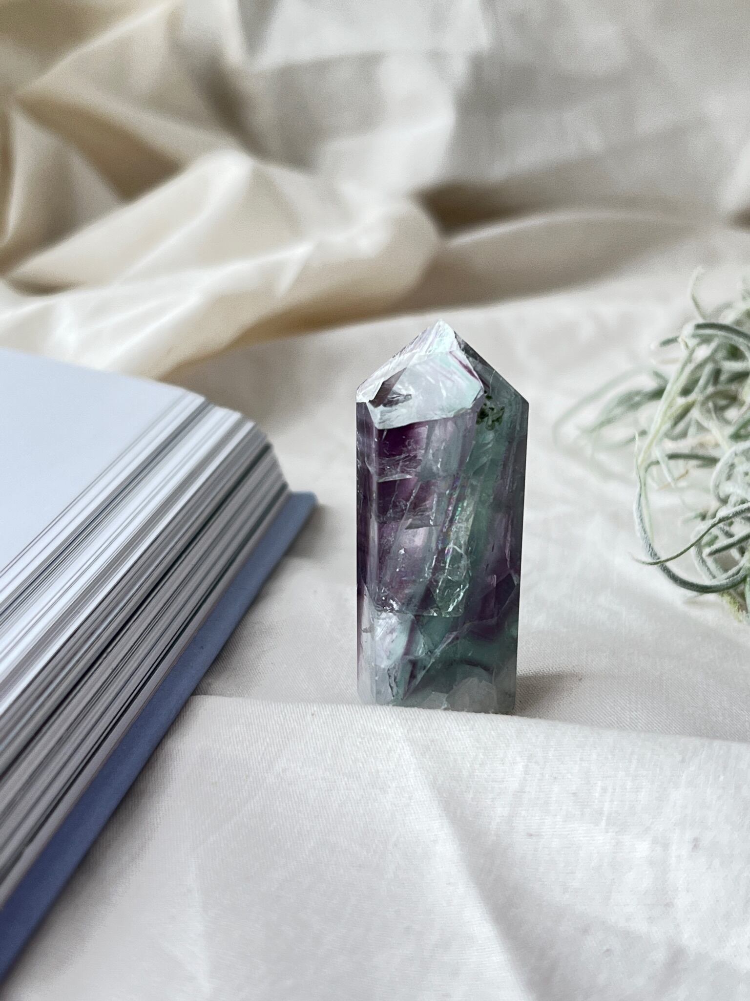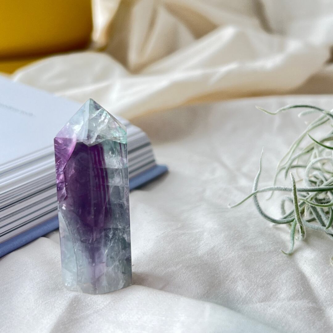 透明感のあるパープル、グリーン、ホワイトが混じったイギリス産のMIXカラーのフローライト。