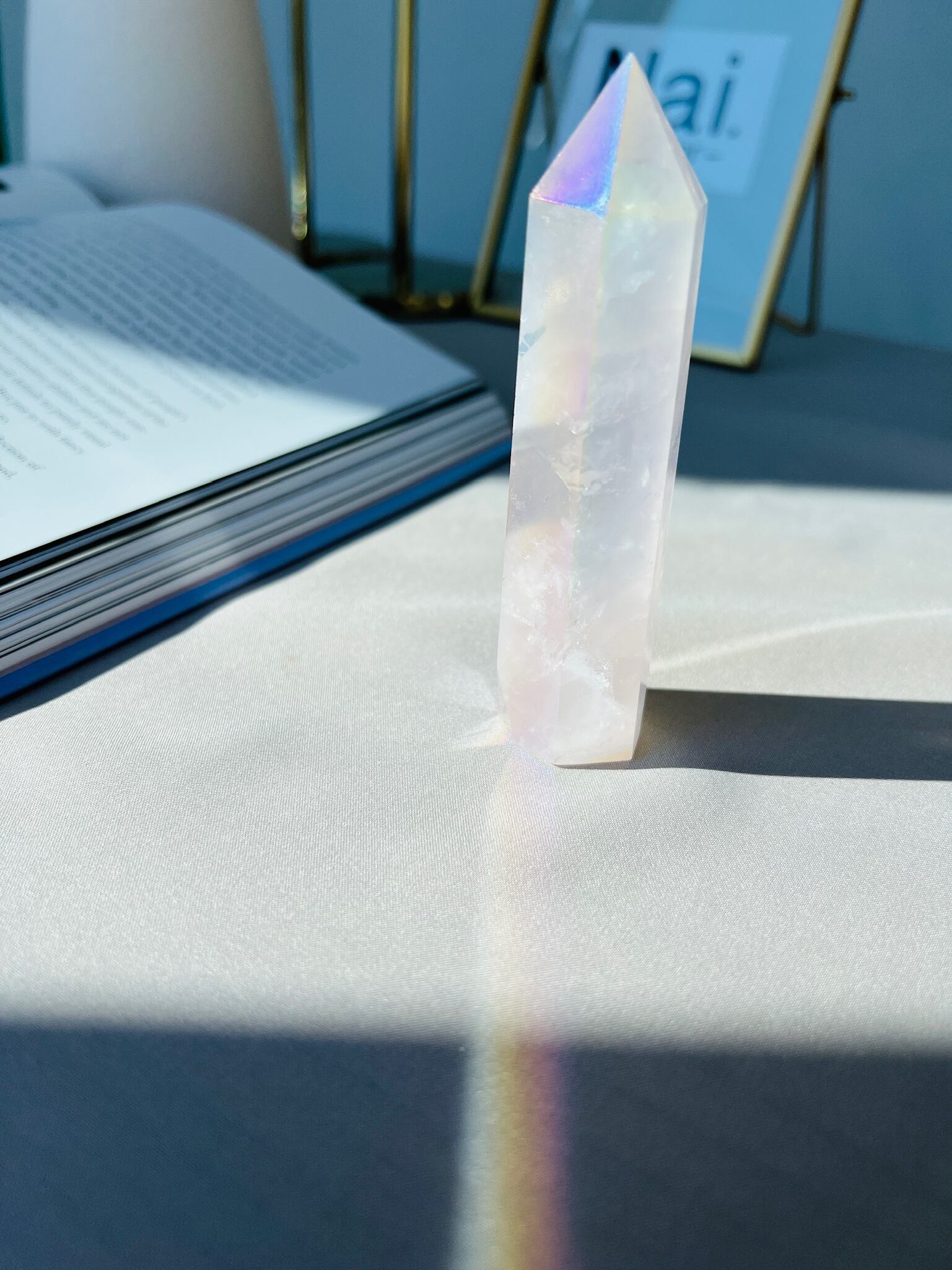 オーラクォーツとは天然水晶に金属を蒸着させた石です。