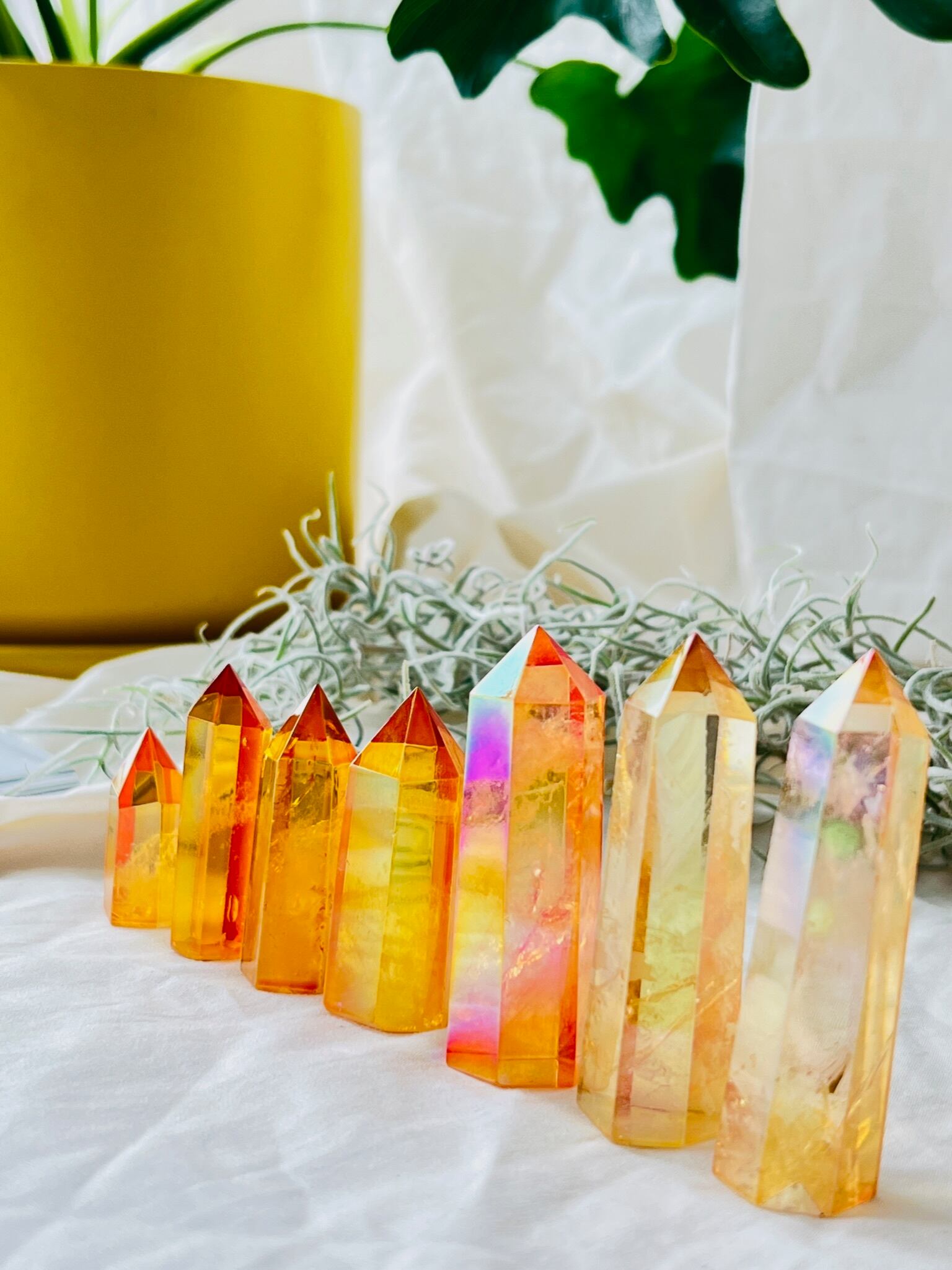 オーラクォーツとは天然水晶に金属を蒸着させた石です。