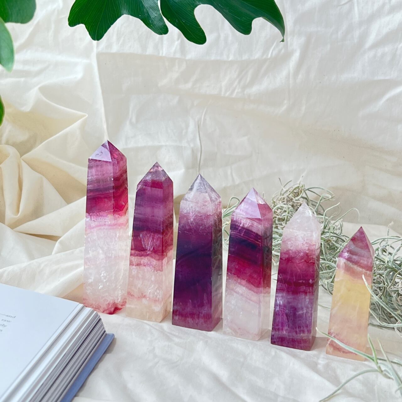 優しいイエローとパープルのグラデーションがCuteなフローライトオベリスクタワー。