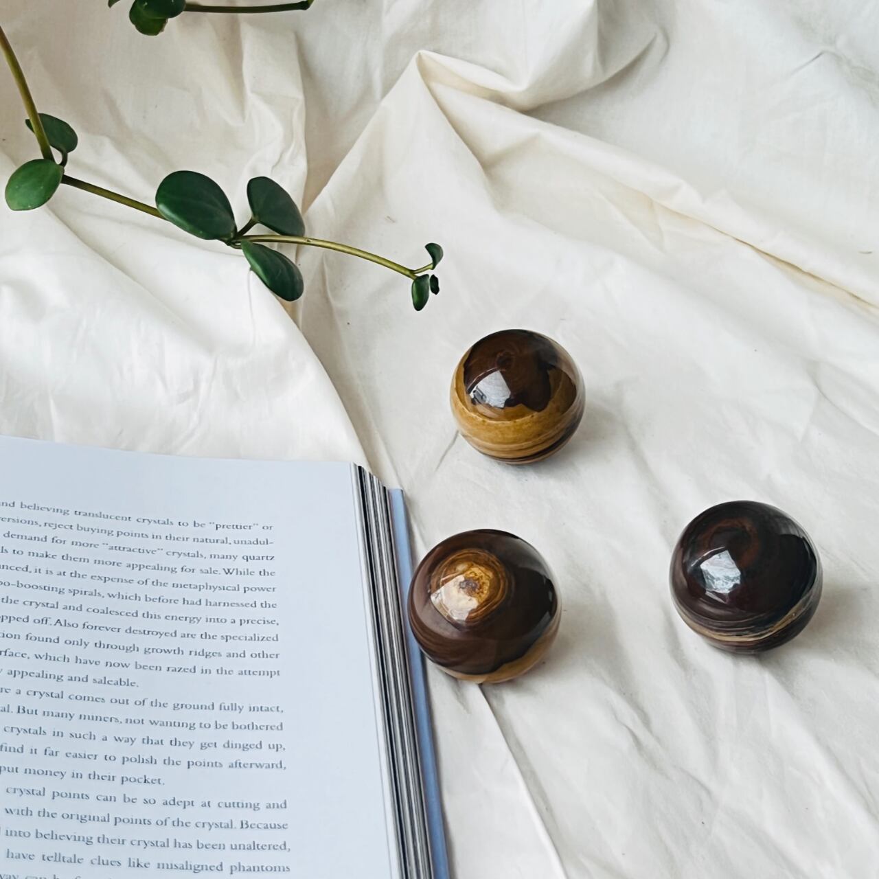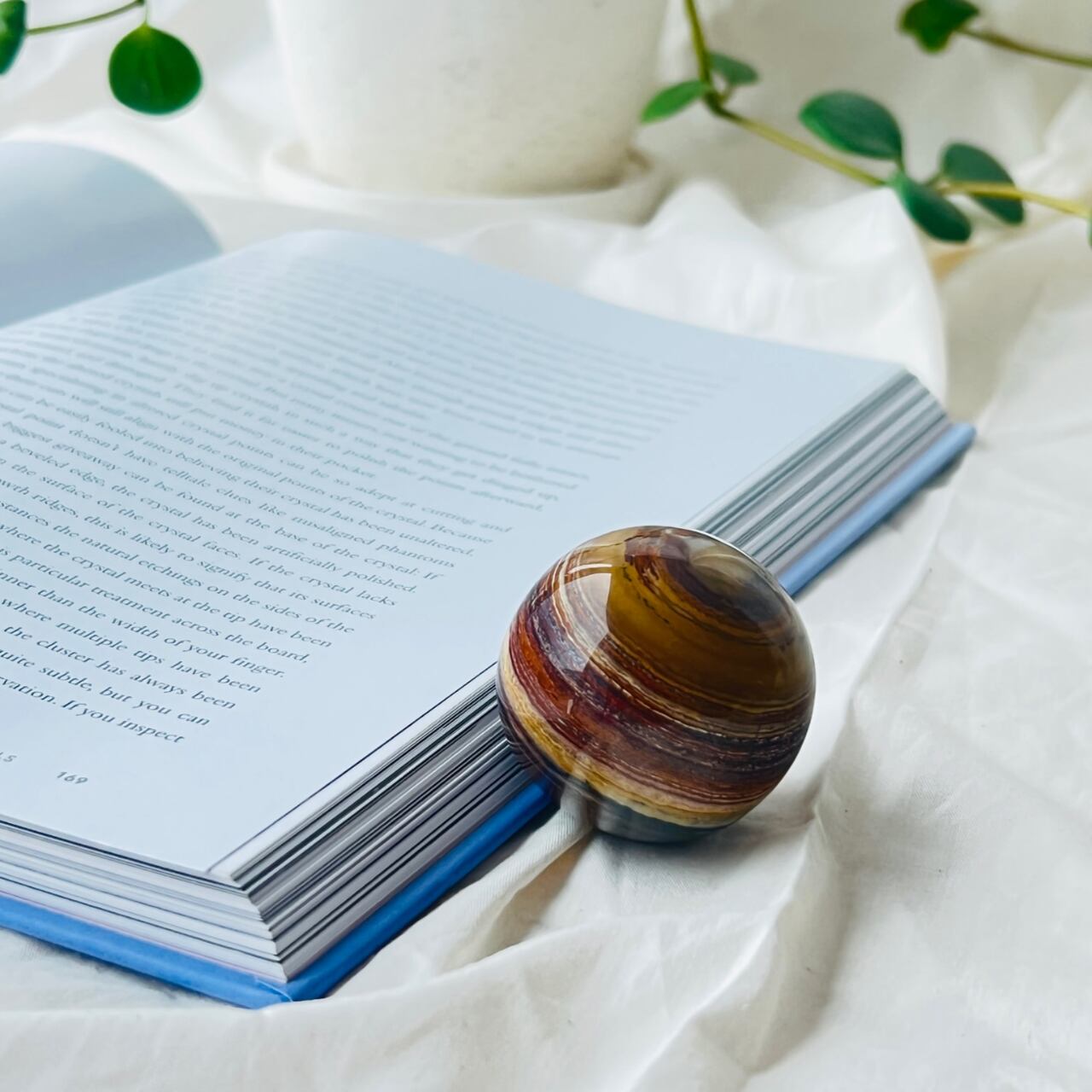 縞模様が美しく、惑星のようなチョコレートカラーのタイガーアイスフィアです。
