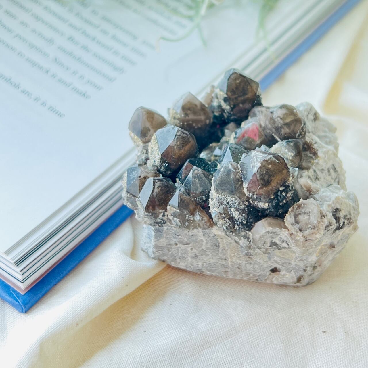 モコモコしたクラスターが愛らしい、色処理加工なしのナチュラルカラーのスモーキークォーツです。