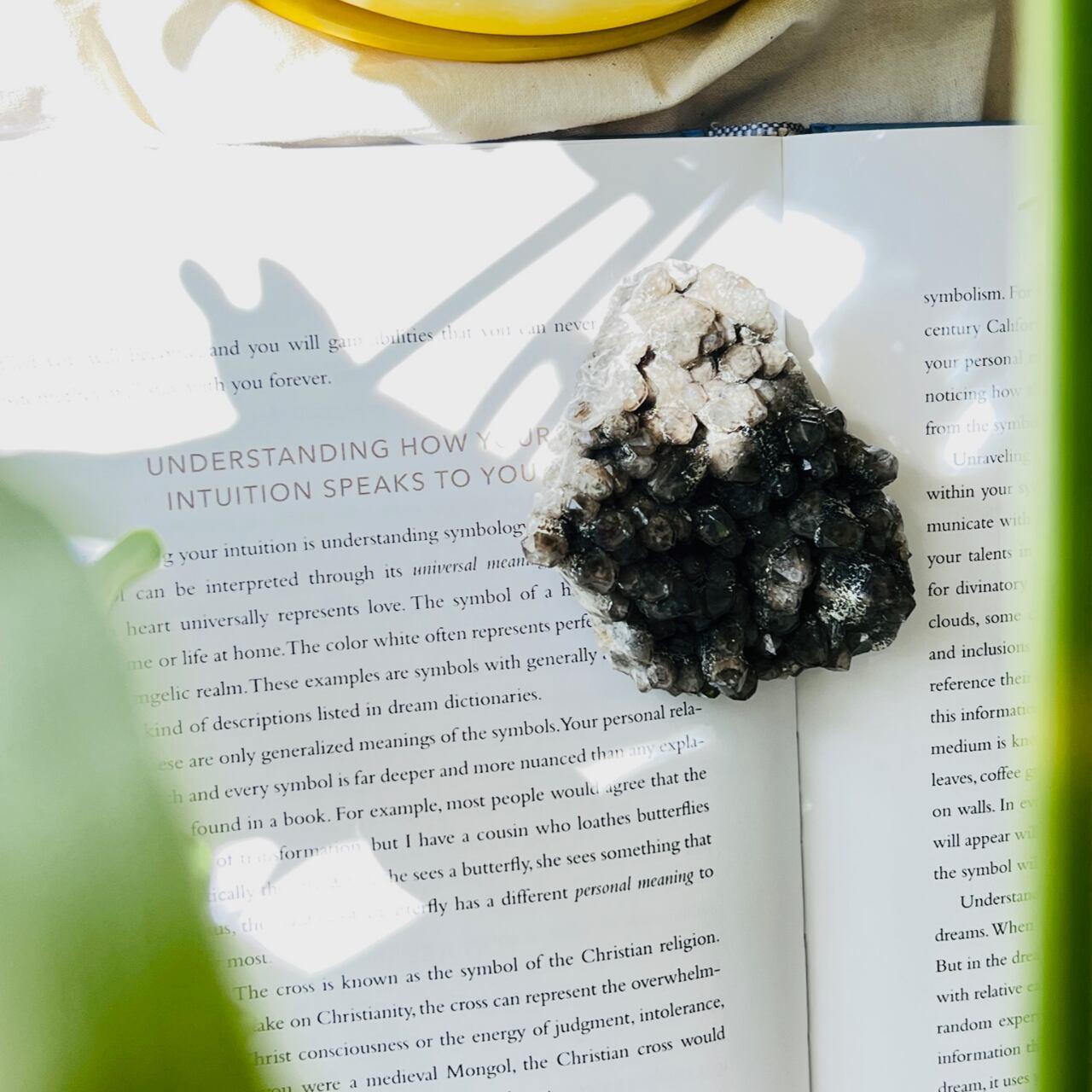 モコモコしたクラスターが愛らしい、色処理加工なしのナチュラルカラーのスモーキークォーツです。