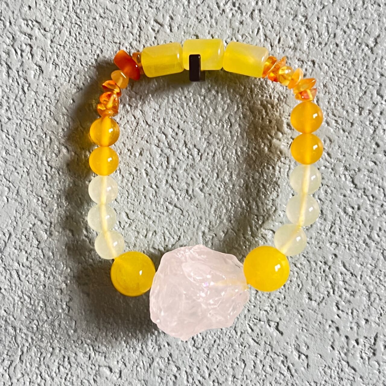 大きく存在感のあるアイスクリスタルと元気カラーのイエロービーズ達でHAPPYで元気になれるブレスレット。