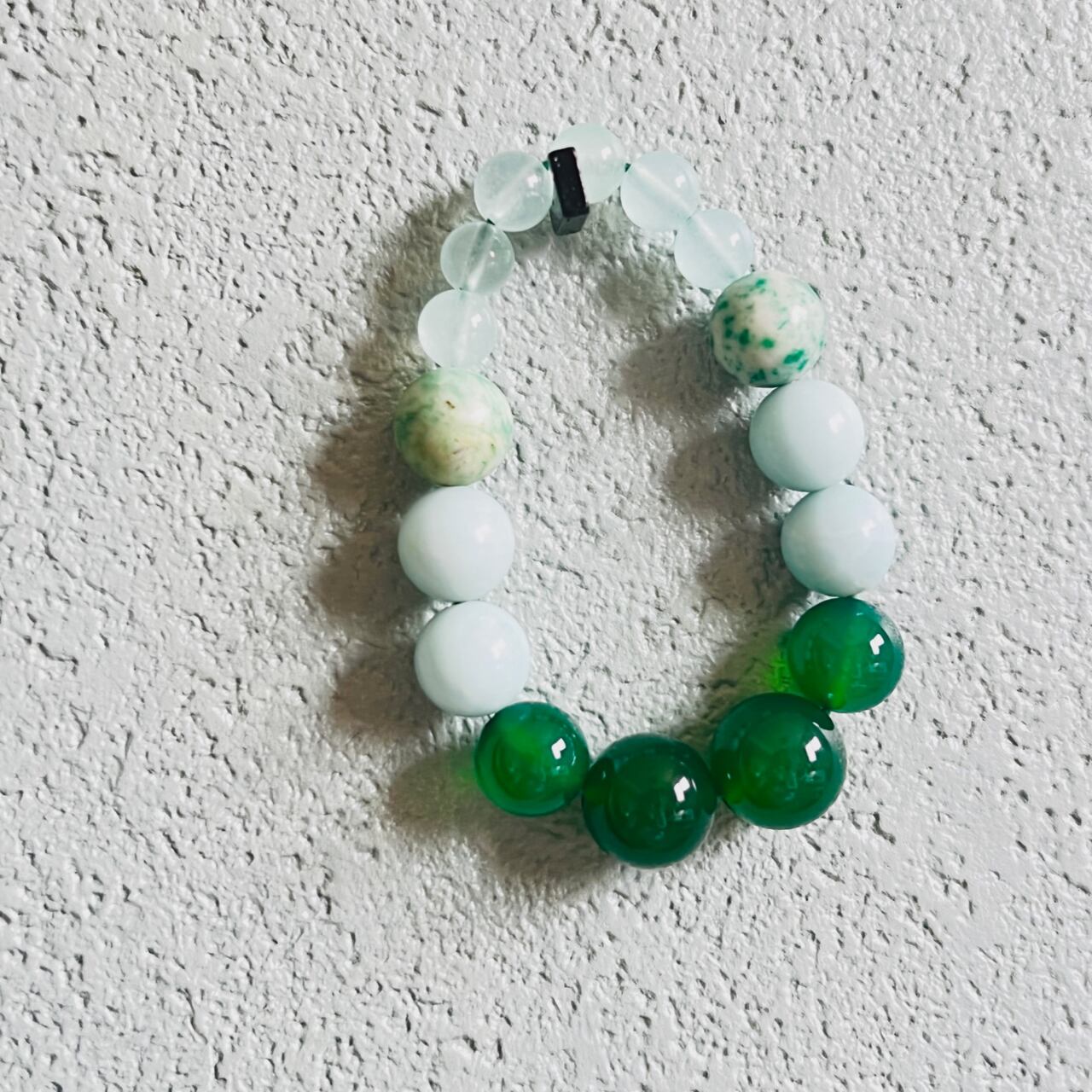 グリーン系カラーでまとめたブレスレット。