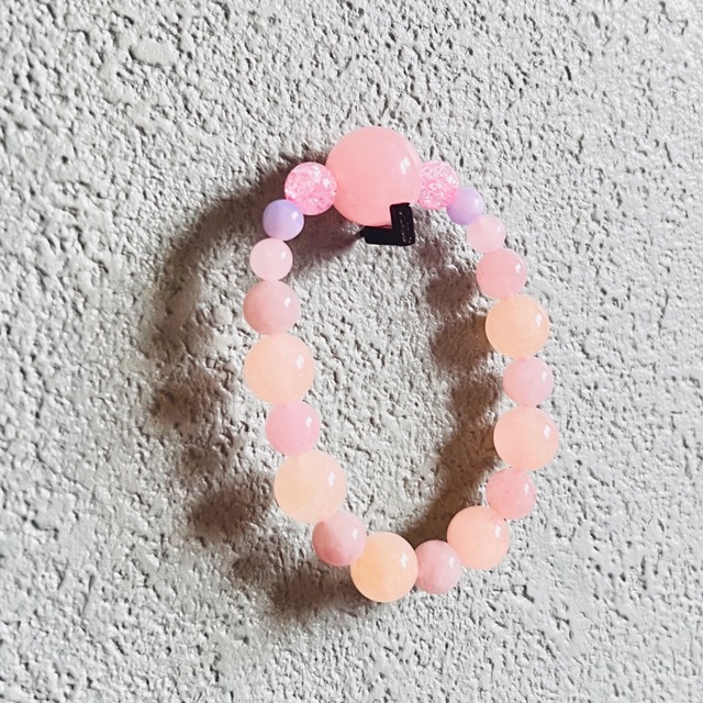 女性のような大人な感覚だけではなく、女の子である喜びを感じ、かわいい気持ちにさせてくれる愛に溢れたHAPPYピンクブレスレット。