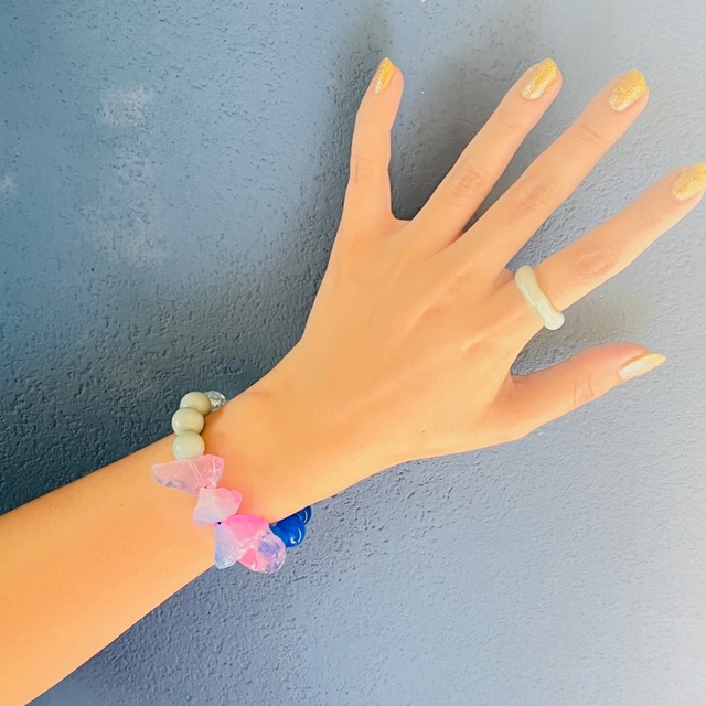 大きめビーズのクールなブルーを集めたオリジナルデザインブレスレット。