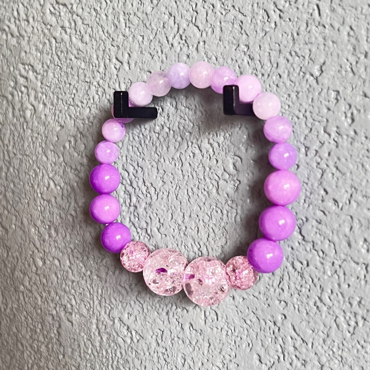 色んなパープルカラーに染められたビーズを集めたオリジナルデザインブレスレット。