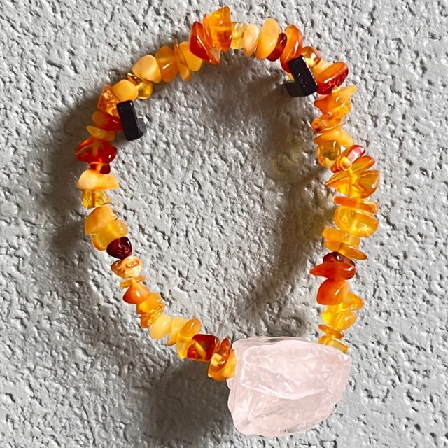 存在感抜群のアイスクリスタルと様々なカラーの天然アンバーを組み合わせたオリジナルデザインブレスレット。