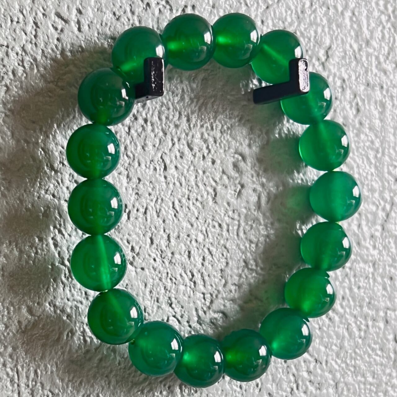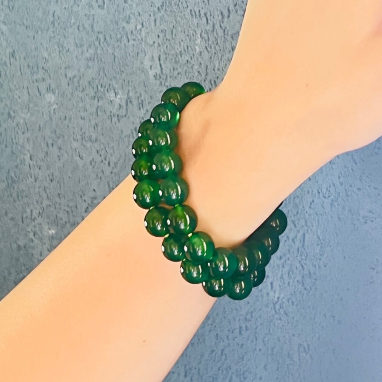 グリーンアゲート10mm珠のシンプルなブレスレット。