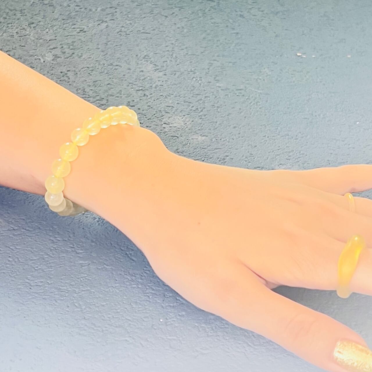 クリアなレモングリーンが爽やかでビーズの大きさも8mmでデザインもシンプルなので、使いやすいアイテム。