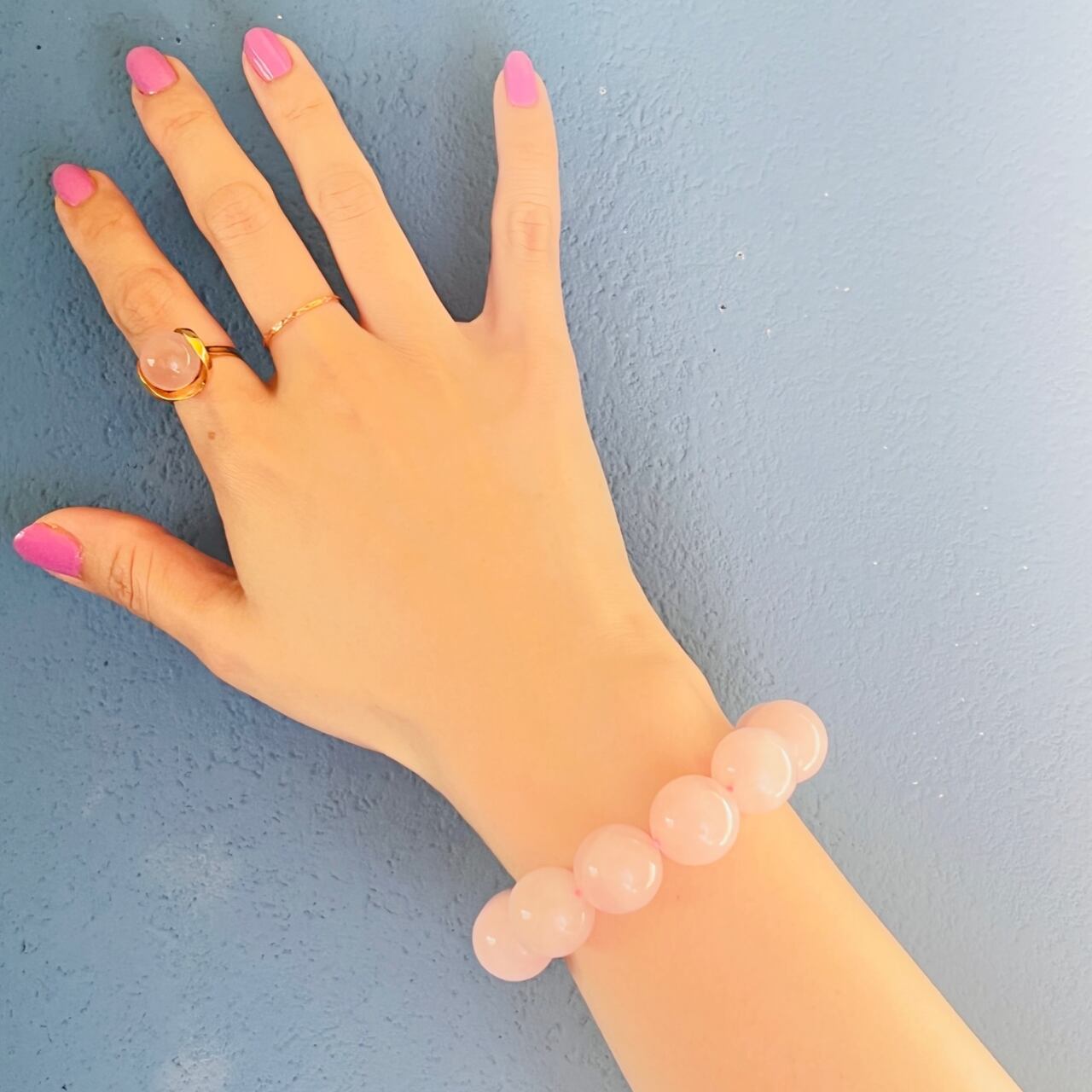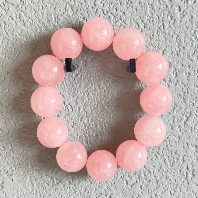 なかなかない16mm珠の特大ビーズで作成したローズクォーツのシンプルブレスレット。