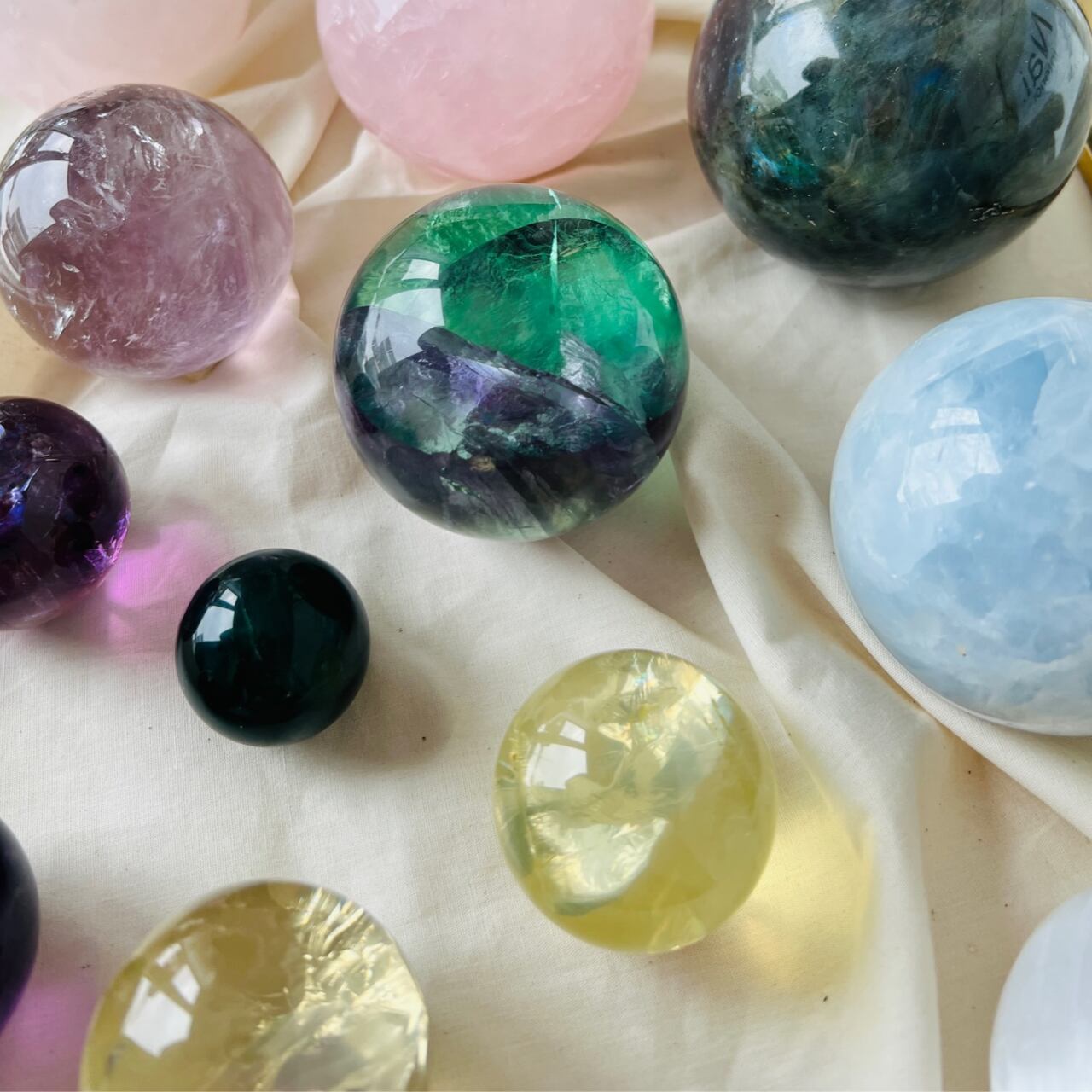 透明感のある美しいHAPPYイエローが魅力的なレモンクォーツスフィア。
