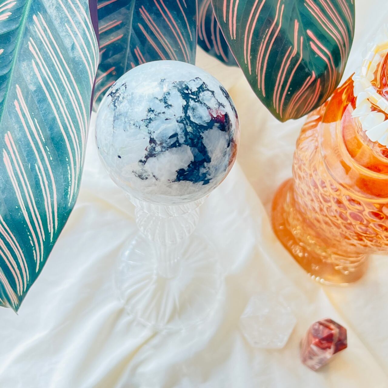 ムーンストーンペグマタイトスフィア 台座付き MOONSTONE PEGMATITE