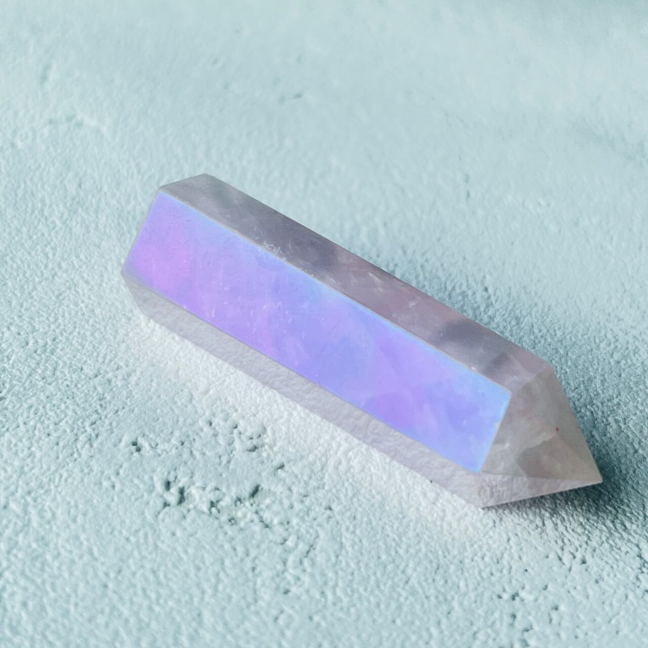 オーラクォーツとは天然水晶に金属を蒸着させた石です。
