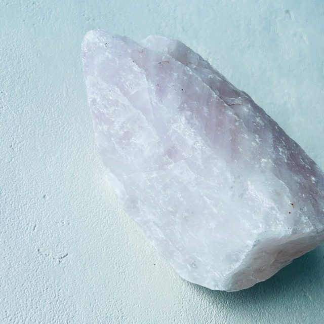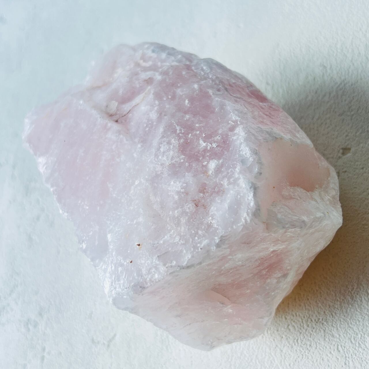 薄く柔らかいピンク色の大きなブラジル産ローズクォーツの原石。