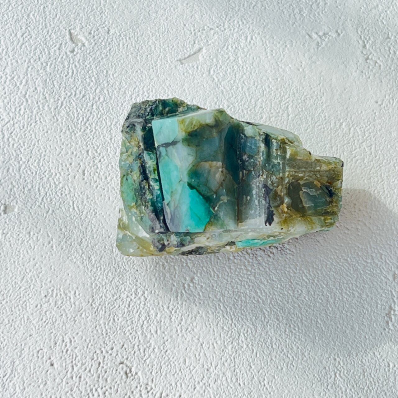 このエメラルド原石は、愛や癒しの石と呼ばれるもの中でも深く壮大な感覚が。