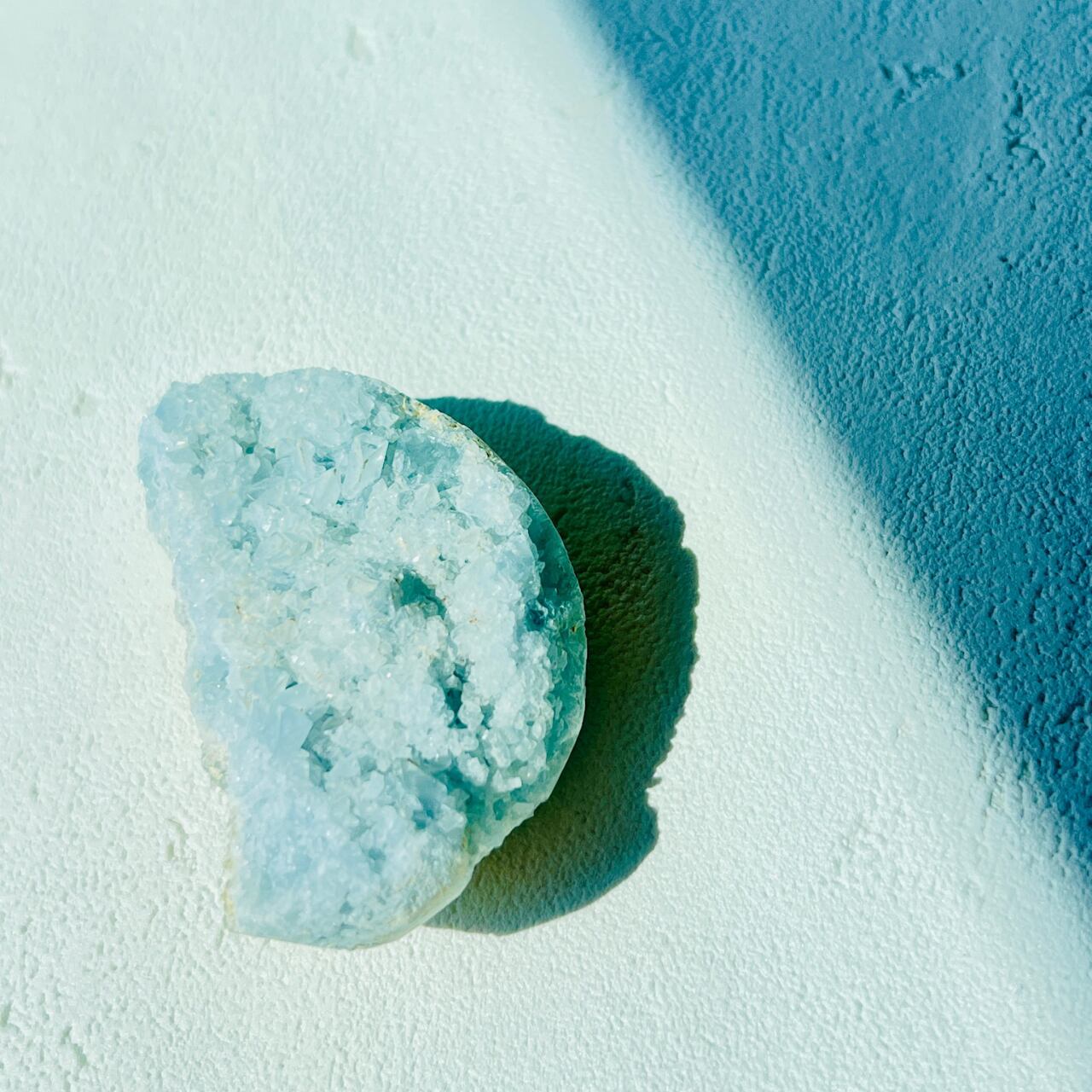 お月さまみたいな形の優しい水色セレスタイトクラスター。